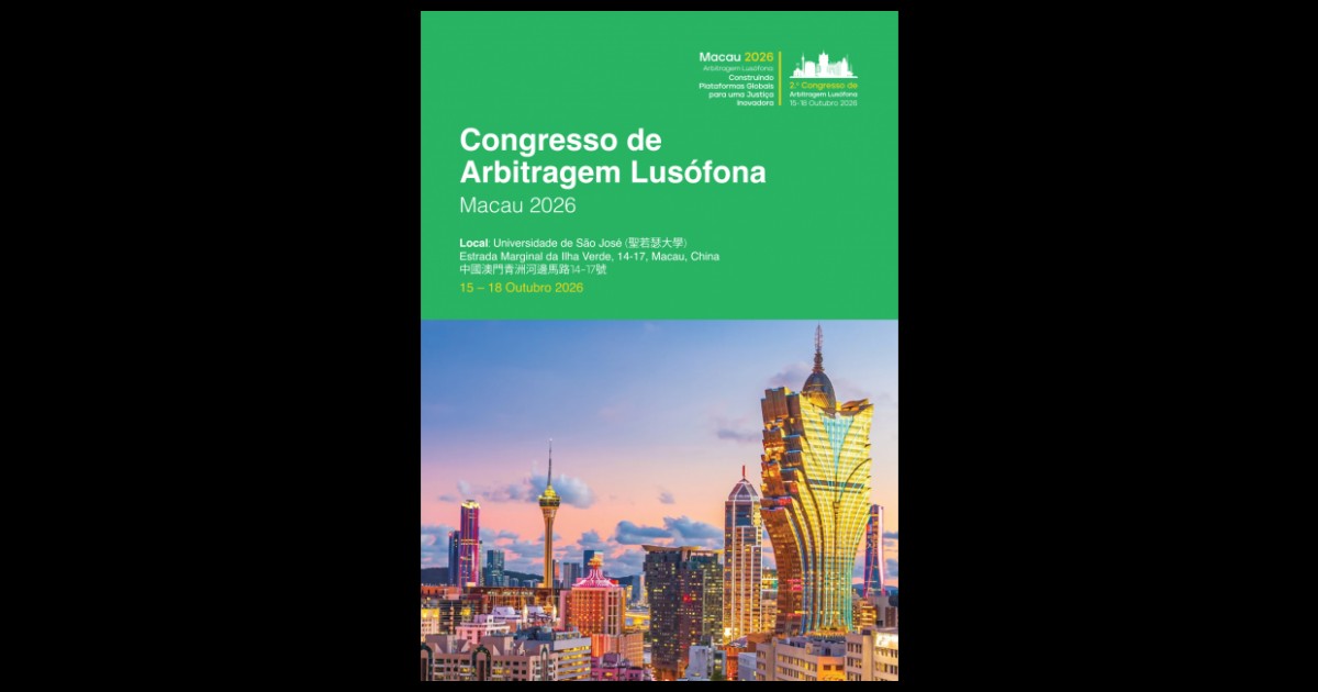 É com grande satisfação que a APA – Associação Portuguesa de Arbitragem dá nota do 2.º Congresso de Arbitragem Lusófona, que terá lugar em Macau, entre os dias 15 e 18 de outubro de 2026.
